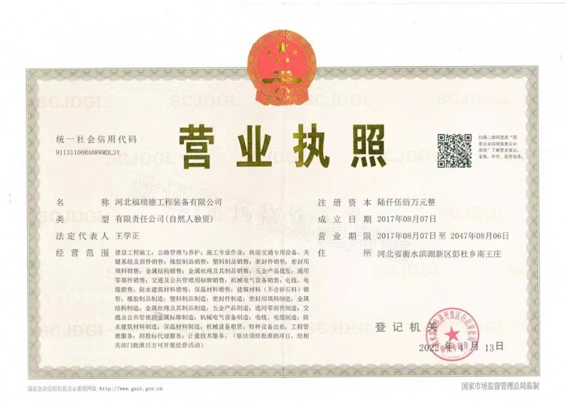 | 發(fā)證機(jī)構(gòu): | 衡水濱湖經(jīng)濟(jì)開(kāi)發(fā)區(qū)行政審批局 | 發(fā)證時(shí)間 : | 2022-04-13 |
