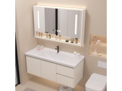 智能奶油陶瓷一體盆衛(wèi)生間浴室柜鏡柜組合輕奢簡約洗手臉盆洗漱臺(tái)