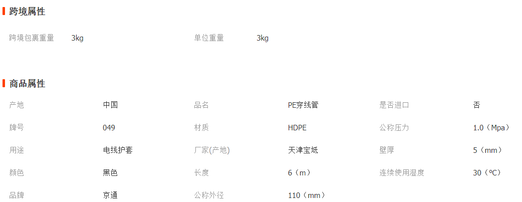 PE穿線管光纜保護管、
