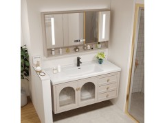美式橡木智能現(xiàn)代輕奢衛(wèi)生間玻璃門洗臉盆柜組合