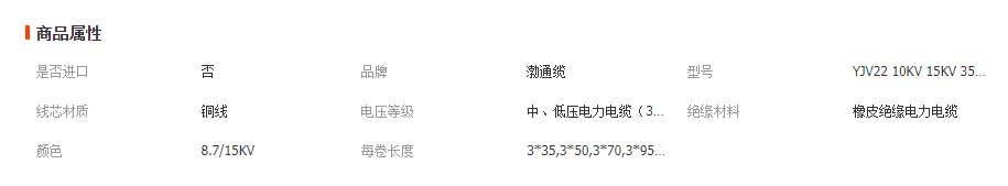 銅芯高壓電纜YJV22 10KV15KV35KV 3芯35/50/70/95/120/185/240