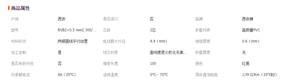 稱:聚氯乙烯絕緣紅黑平行電纜電線